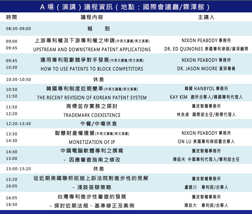 協辦單位:美國NIXON PEABODY事務所、韓國HANBYOL INTERNATIONAL專利暨法律事務所