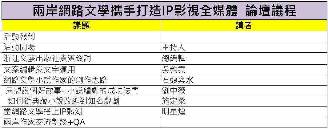 「兩岸網路文學攜手打造IP影視全媒體論壇」名額100名,免費參加 (咖啡、茶飲、冰沙自助無限供應)
