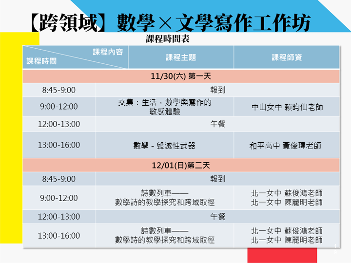 9:00-12:00 詩數列車——數學詩的教學探究和跨域取徑