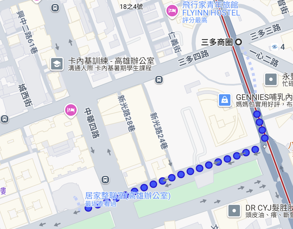 高雄捷運三多商圈站走路 - 約步行6分鐘