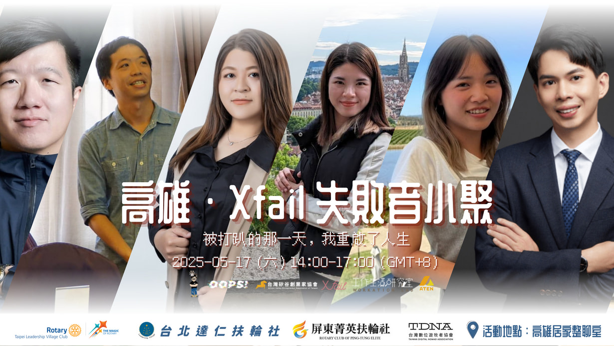 可以是技術研發、開店、新創投資、減肥或前段感情,可以是任何職業領域,任何人名,更可以是無限次、跨領域的失敗經歷。在【XFail 失敗者年會及小聚】勇氣演講人迎擊自己 Fail 經驗,與會者吸收種種珍貴失敗寶典並轉化為避開死亡沼澤的步伐,大步向前。在這地方,你的失敗是別人的成功之母,你的挫敗是更接近成功的一記響鐘,面對失敗,跟它說掰掰,明早起床,又是一個全新世界等著你!