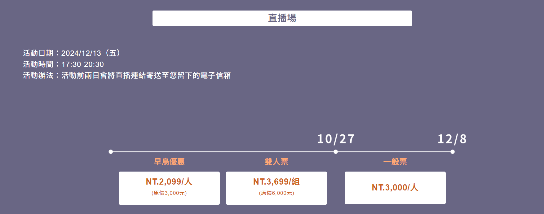 ※本次活動無劃位服務,當日座位安排將依報到入場順序為主。