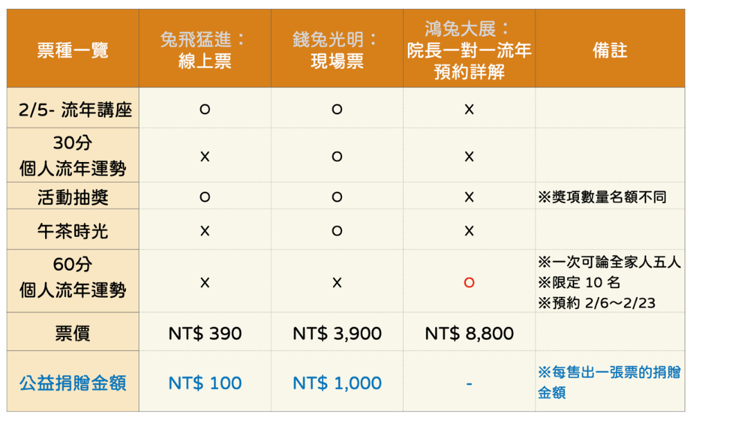 兔飛猛進一部曲:02/05 流年分享會(線上參與)/ 抽獎 / 公益